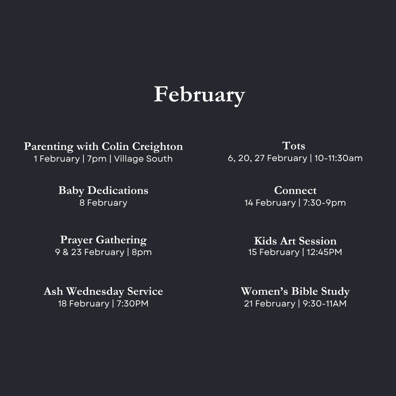 Coming Up in February